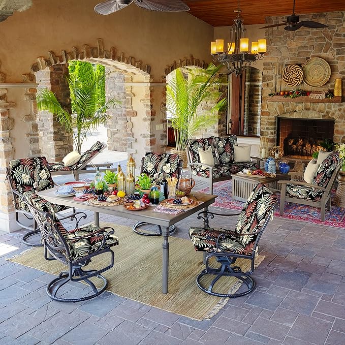 Arden Outdoor Deep Seat Cushion Set, 24 in x 24 in, Weather-Proof, Rain-Proof, Fade Resistant Patio Cushion for Chair, Sofa, and Couch Simone Black Tropical