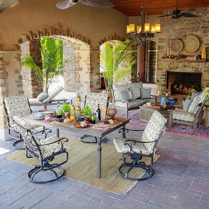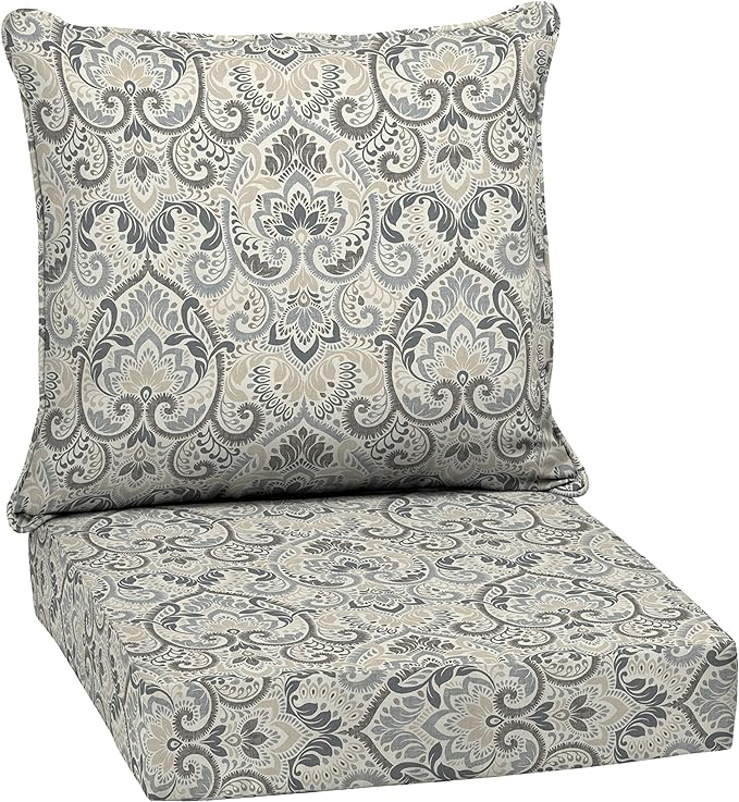 Arden Outdoor Deep Seat Cushion Set, 24 in x 24 in, Weather-Proof, Rain-Proof, Fade Resistant Patio Cushion for Chair, Sofa, and Couch Neutral Aurora Damask