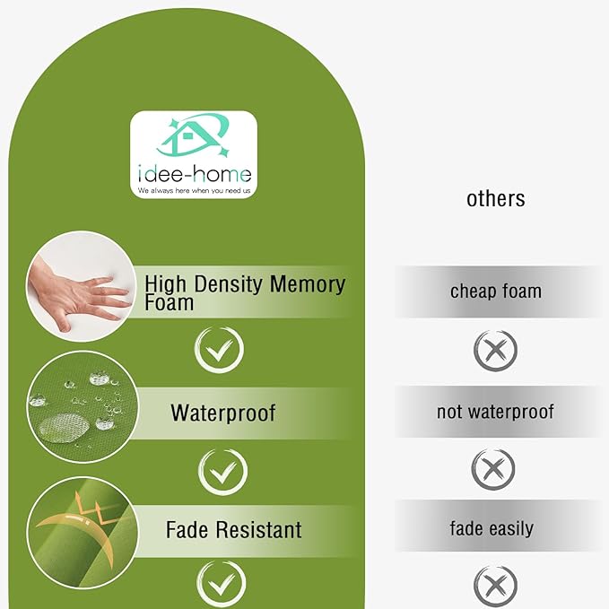 idee-home Outdoor Cushions for Patio Furniture, Outdoor Seat Cushion, Waterproof Hampton Bay Deep Seat Replacement Couch Chair Cushions for Garden Lawn Backyard Deck, 24 x 24 Green