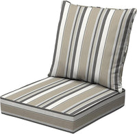 Arden earthFIBER Outdoor Deep Seat Cushion Set, 24 x 24, Rain-Proof, Fade Resistant, Deep Seat Bottom and Back Cushion for Chair, Sofa Taupe Grey Boardwalk Stripe