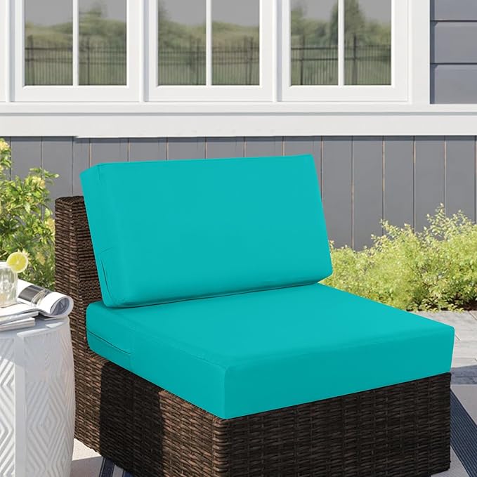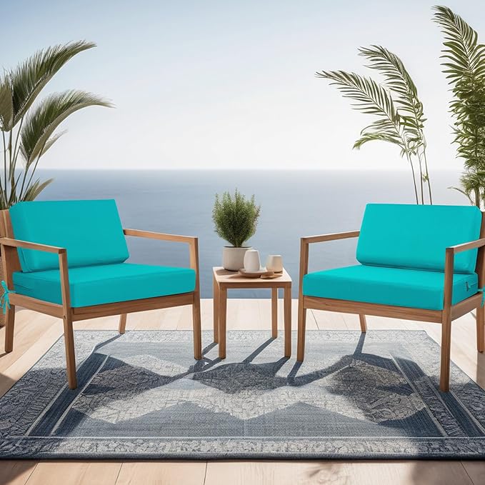 idee-home Outdoor Cushions for Patio Furniture, Outdoor Seat Cushion, Waterproof Couch Hampton Bay Deep Seat Replacement Chair Cushions for Garden Lawn Backyard Deck, 26.5 x 26.5 Peacock Blue