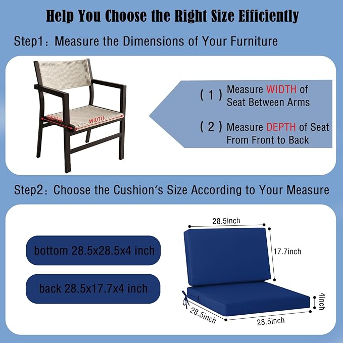 idee-home Outdoor Cushions for Patio Furniture, Outdoor Seat Cushion, Waterproof Couch Hampton Bay Deep Seat Replacement Chair Cushions for Garden Lawn Backyard Deck, 28.5 x 28.5 Navy Bue