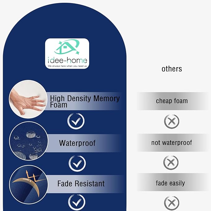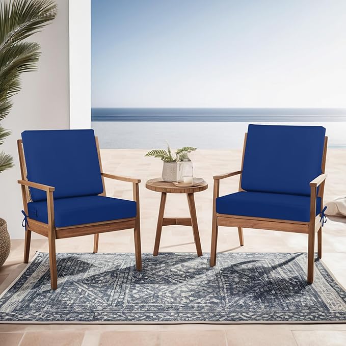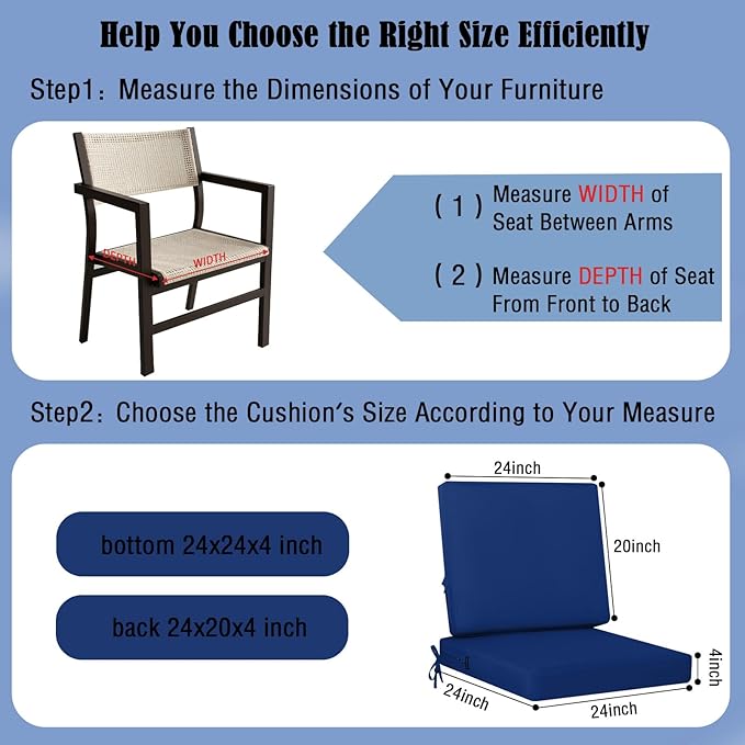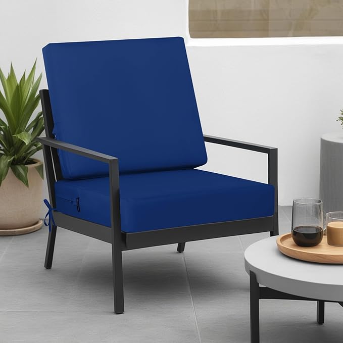 idee-home Outdoor Cushions for Patio Furniture, Outdoor Seat Cushion, Waterproof Couch Hampton Bay Deep Seat Replacement Chair Cushions for Garden Lawn Backyard Deck, 24 x 24 Navy Bue