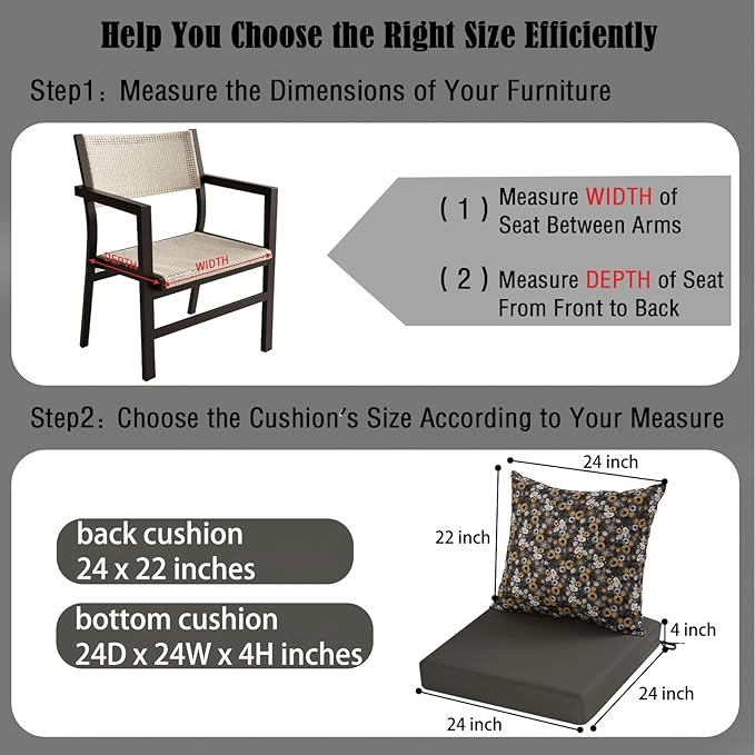 idee-home Outdoor Cushions for Patio Furniture, Outdoor Seat Cushions 24 x 24 with Fade Resistant Waterproof Removable Cover, Deep Seat Replacement Couch Sofa Chair Cushions for Yard Garden