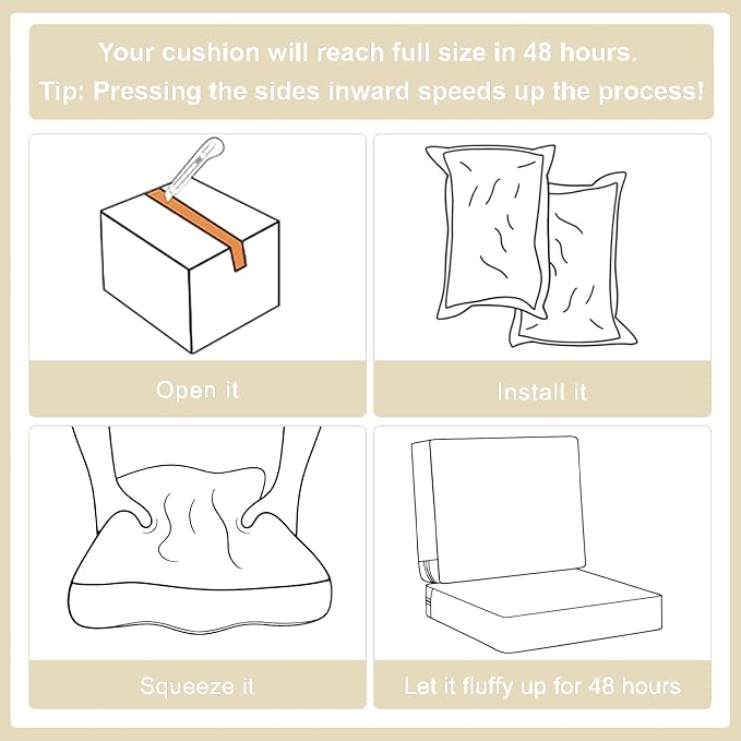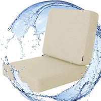 Favoyard Outdoor Deep Seat Cushion Set, 22 x 22 Inch Rainproof & 3-Year Fade Resistant Patio Furniture Cushions, Removable Seat Bottom & Back Cushion Covers with Ties for Chair, Sofa, Couch, Beige