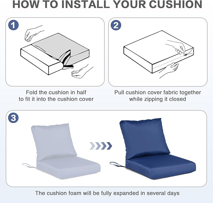 BPS 23x26 Inch Deep Seat Outdoor Cushion Set, Navy Blue Fade-Resistant and Water-Resistant Patio Chair Cushion for Wicker Chairs, Sofas, Love Seats