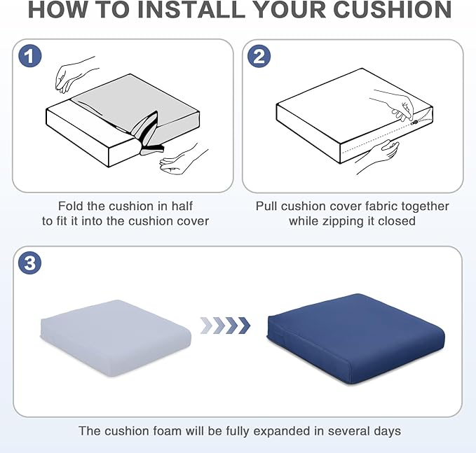 BPS 21x21 Inch Deep Seat Outdoor Cushion, Navy Blue Fade-Resistant and Water-Resistant Patio Chair Cushion for Wicker Chairs, Sofas, Love Seats
