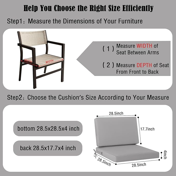idee-home Outdoor Cushions for Patio Furniture, Outdoor Seat Cushion, Waterproof Couch Hampton Bay Deep Seat Replacement Chair Cushions for Garden Lawn Backyard Deck, 28.5 x 28.5 Grey