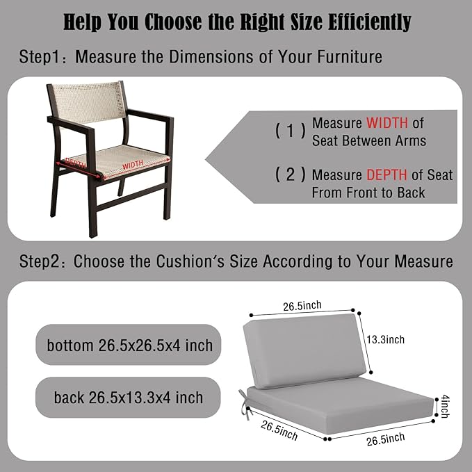 idee-home Outdoor Cushions for Patio Furniture, Outdoor Seat Cushion, Waterproof Couch Hampton Bay Deep Seat Replacement Chair Cushions for Garden Lawn Backyard Deck, 26.5 x 26.5 Grey