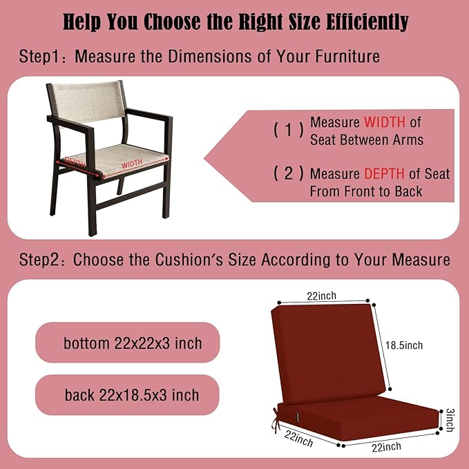idee-home Outdoor Cushions for Patio Furniture, Outdoor Seat Cushion, Waterproof Couch Hampton Bay Deep Seat Replacement Chair Cushions for Garden Lawn Backyard Deck, 22 x 22