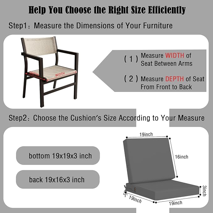 idee-home Outdoor Cushions for Patio Furniture, Outdoor Seat Cushion, Waterproof Couch Hampton Bay Deep Seat Replacement Chair Cushions for Garden Lawn Backyard Deck, 19 x 19 Dark Grey