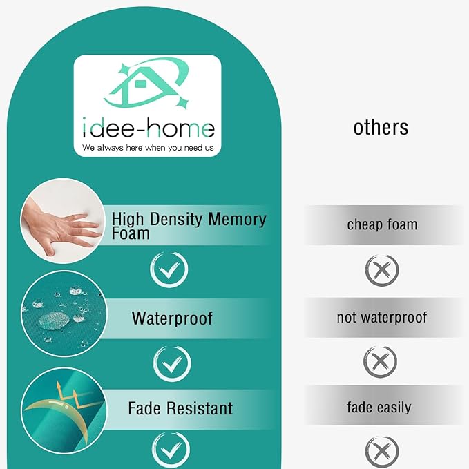 idee-home Outdoor Cushions for Patio Furniture, Outdoor Seat Cushion, Waterproof Couch Hampton Bay Deep Seat Replacement Chair Cushions for Garden Lawn Backyard Deck, 22 x 22 Peacock Blue