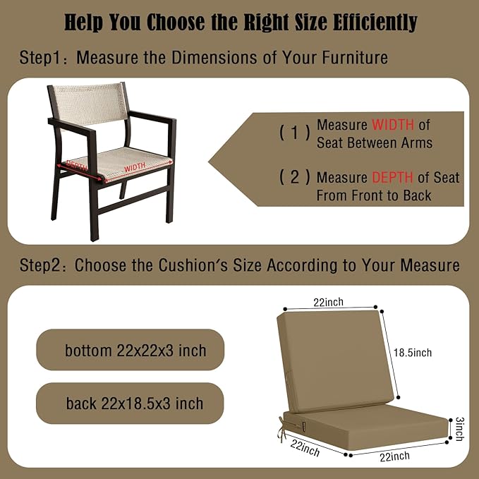 idee-home Outdoor Cushions for Patio Furniture, Outdoor Seat Cushion, Waterproof Couch Hampton Bay Deep Seat Replacement Chair Cushions for Garden Lawn Backyard Deck, 22 x 22