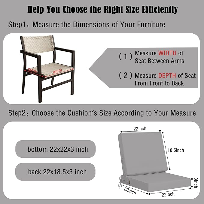idee-home Outdoor Cushions for Patio Furniture, Outdoor Seat Cushion, Waterproof Couch Hampton Bay Deep Seat Replacement Chair Cushions for Garden Lawn Backyard Deck, 22 x 22 Grey