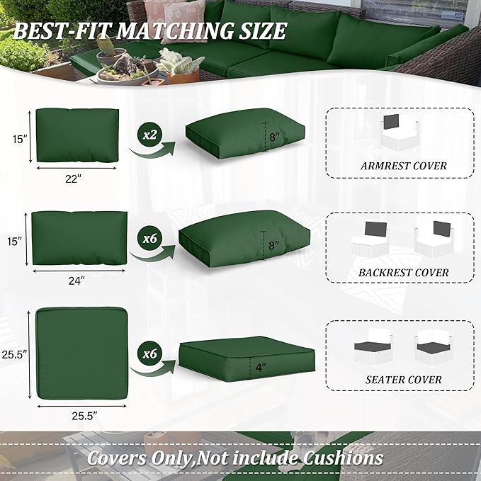 14 Pcs Outdoor Cushion Covers Patio Cushion Slipcovers Replacement Splash Proof with Zipper for Outdoor Furniture, Patio Sofa Couch 3 Sizes, Covers Only Sale
