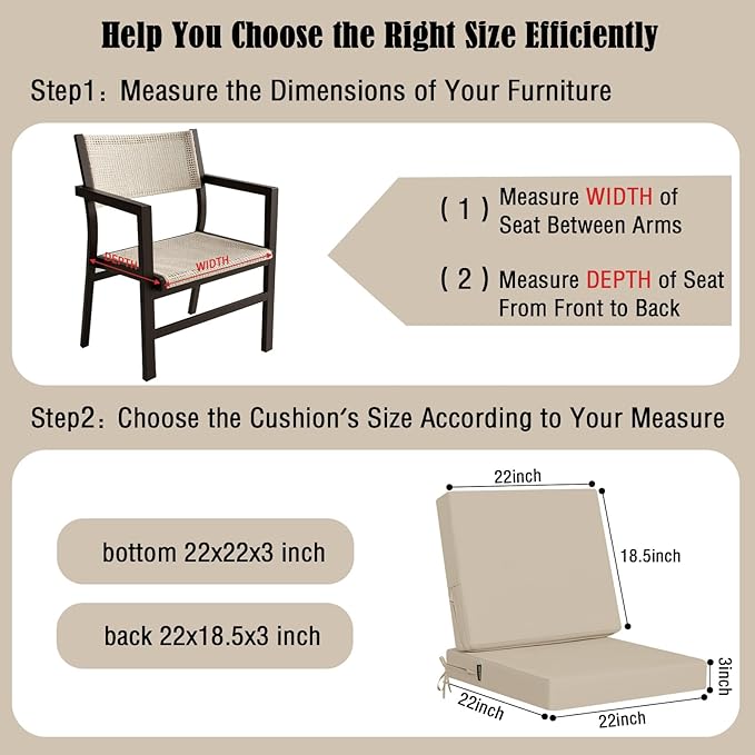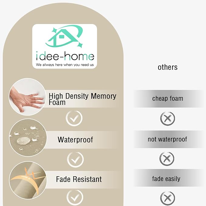 idee-home Outdoor Cushions for Patio Furniture, Outdoor Seat Cushion, Waterproof Couch Hampton Bay Deep Seat Replacement Chair Cushions for Garden Lawn Backyard Deck, 22 x 22 Beige