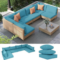 Outdoor Furniture Replacement Cushions, 14 Pcs Water-Resistant Replacement Sofa Cushion for Patio Garden Porch (Liner&Cover,Only Cushions No Sofa) (Lake Blue)