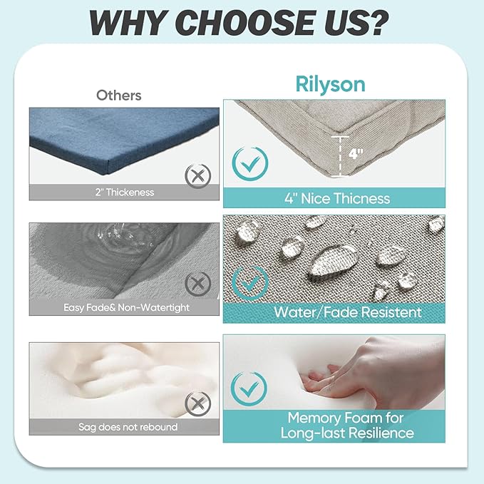 Patio Cushions for Outdoor Furniture - 22×24 Inches High Back and Deep Seating Outdoor Cushion for Patio Chairs Sofa Couch Loveseat Water Resistant(Beige/2 Set/No Button)
