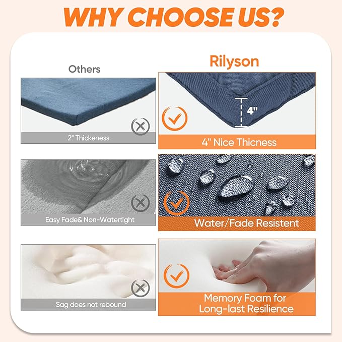 Patio Cushions for Outdoor Furniture - 22×24 Inches High Back and Deep Seating Outdoor Cushion for Patio Chairs Sofa Couch Loveseat Water Resistant(Blue/2 Set/Smile)