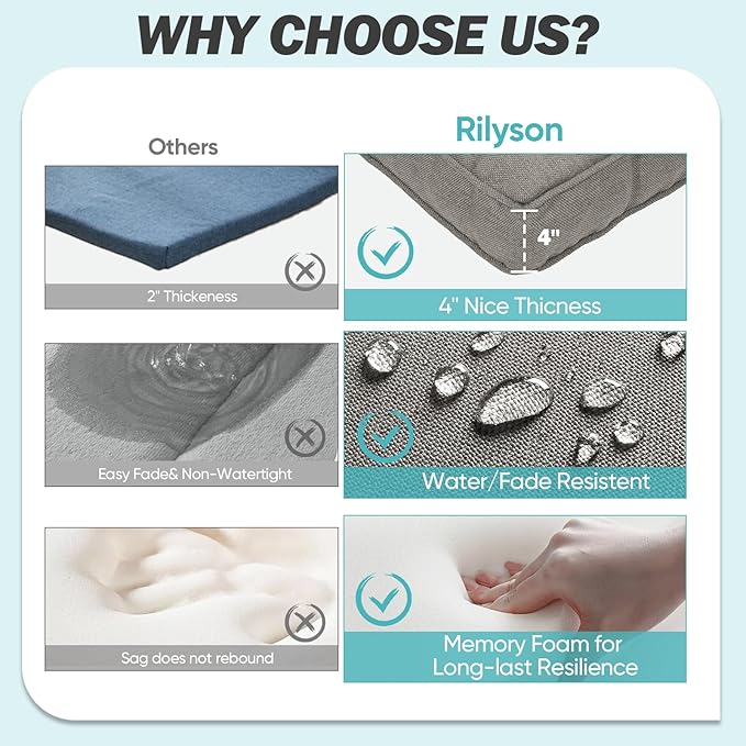 Patio Cushions for Outdoor Furniture - 22×24 Inches High Back and Deep Seating Outdoor Cushion for Patio Chairs Sofa Couch Loveseat Water Resistant(Grey/1 Set/No Button)