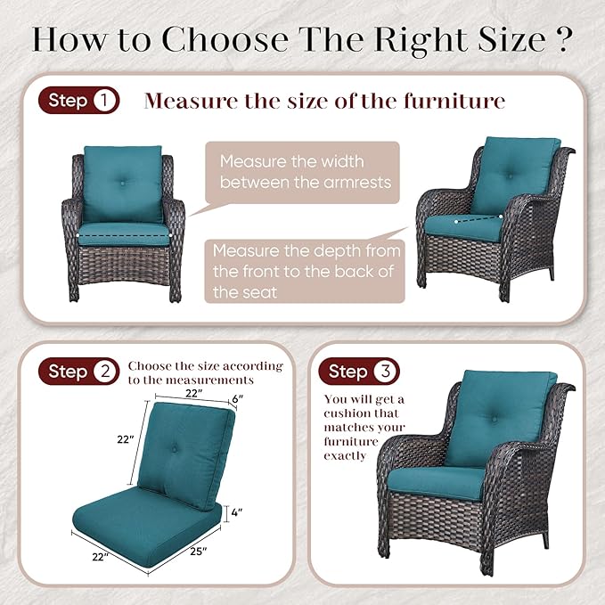 Outdoor Chair Cushions-Patio Chair Cushions Set with Removable Cover 22 X 25 Inch Outdoor Cushions for Patio Furniture Chair Sofa Couch-Peacock Blue