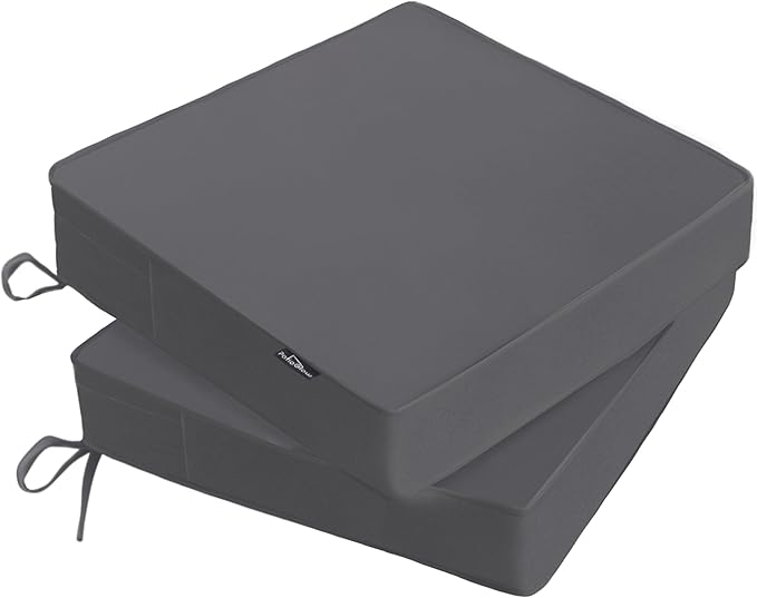 Outdoor Chair Cushions 24 x 24 x 4 Inch, Waterproof & Fade Resistant Patio Seat Cushion for Furniture with Handle and Ties, Thick Seating Pads for Outside Sofa Couch Set of 2, Grey