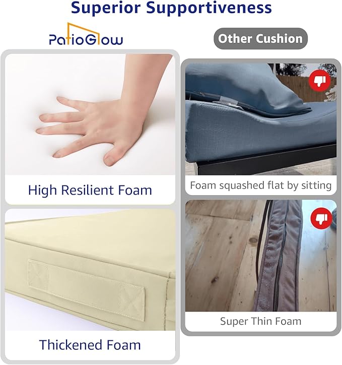 Outdoor Chair Cushions 24 x 24 x 4 Inch, Waterproof & Fade Resistant Patio Seat Cushion for Furniture with Handle and Ties, Thick Seating Pads for Outside Sofa Couch Set of 2, Yellow