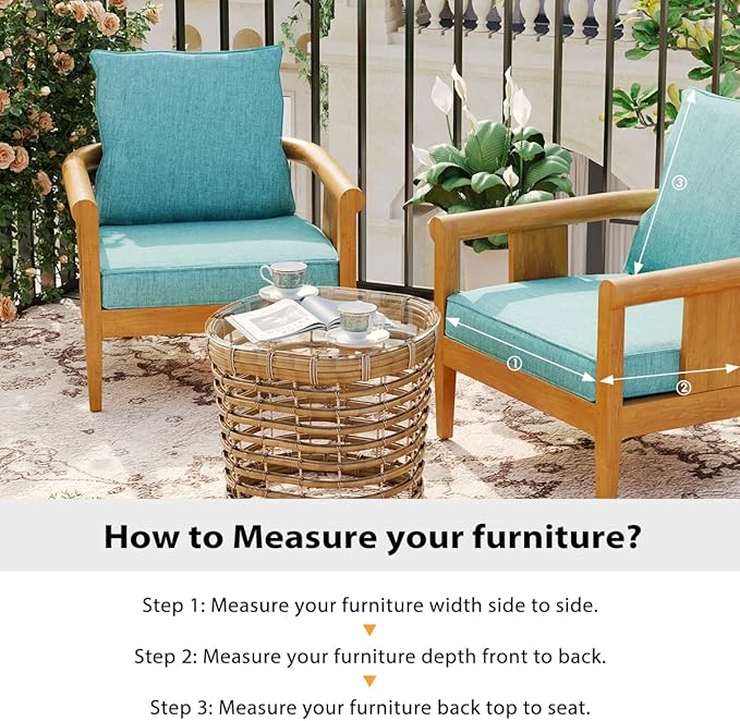 Sundale Outdoor Olefin Deep Seat Cushion, Patio Chair Cushion and Pillow, Water-Resistant Sectional Sofa Pad with Straps Teal, 23 x 26 x 4 Inches