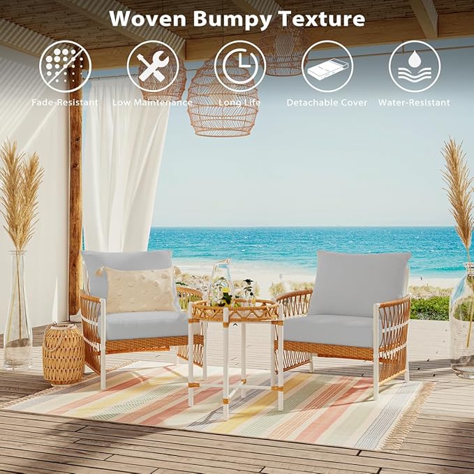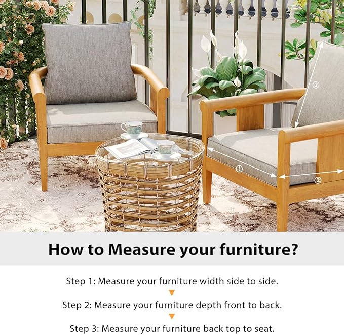 Sundale Outdoor Olefin Deep Seat Cushion Set of 2, Patio Chair Cushion and Pillow, Water-Resistant Sectional Sofa Pad with Straps Light Gray, 24 x 24 x 4 Inches
