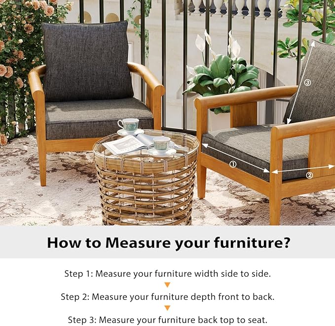 Sundale Outdoor Olefin Deep Seat Cushion, Patio Chair Cushion and Pillow, Water-Resistant Sectional Sofa Pad with Straps Medium Gray, 24 x 24 x 4 Inches