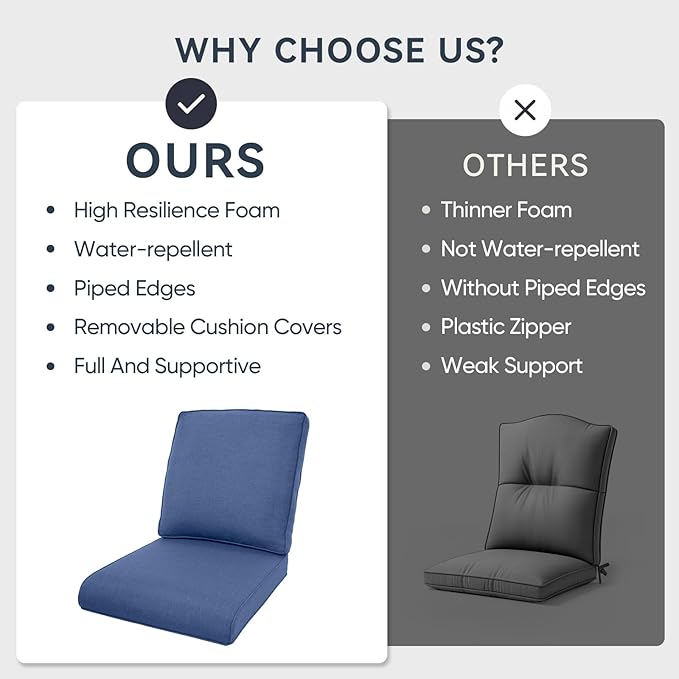 Outdoor Chair Cushions for Patio Furniture - 1 Pack Outside Durable Thick Replacement Cushion 22x24 with Zipper Cover for Wicker Glider Rocking Chairs Loveseat Couch – Blue/Regular