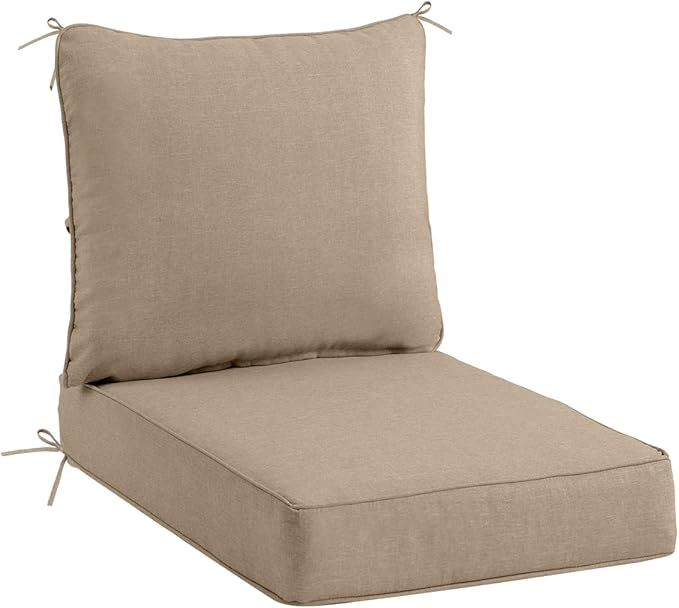 Sundale Outdoor Olefin Deep Seat Cushion, Patio Chair Cushion and Pillow, Water-Resistant Sectional Sofa Pad with Straps Khaki, 24 x 24 x 4 Inches