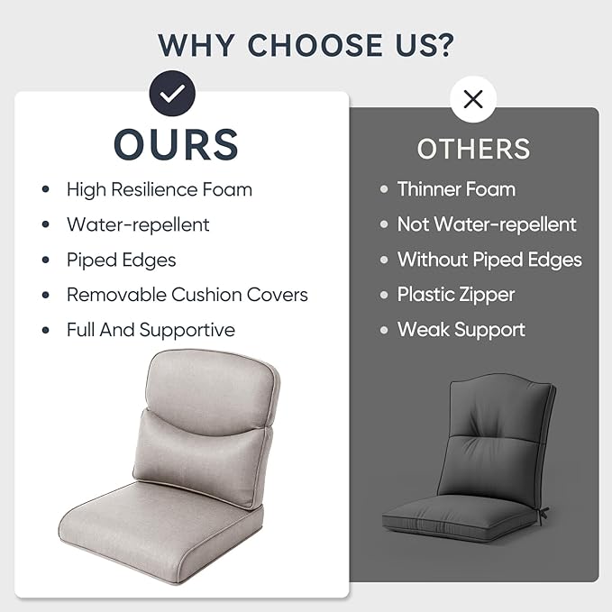 Outdoor Chair Cushions 3 Packs - Outside High Back Comfortable Thickened Pillow 22x24 with Zipper Cover for Patio Rocking Swivel Chairs Loveseat Sofa – Beige/Crescent