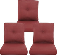 Outdoor Chair Cushions 3 Packs - Outside High Back Thick Water-Resistant Cushion 22x24 with Zipper Cover for Patio Glider Rocking Chairs Loveseat Couch – Red/Buckle