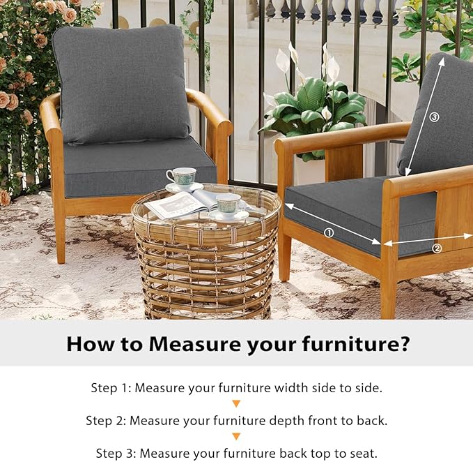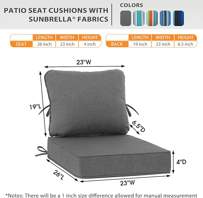Sundale Outdoor Sunbrella Deep Seat Cushions, Patio Acrylic Sectional Sofa Couches Cushion and Pillow, Water-Resistant Furniture Replacement Cushions, 23 x 26 x 4 inches - Cast Slate