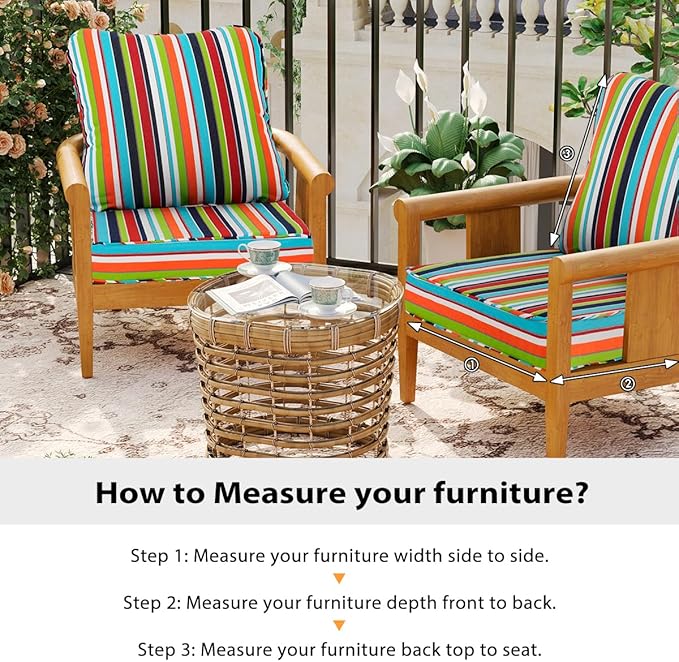 Sundale Outdoor Sunbrella Deep Seat Cushions, Patio Acrylic Sectional Sofa Couches Cushion and Pillow, Water-Resistant Furniture Replacement Cushions, 23 x 26 x 4 inches - Carousel Confetti