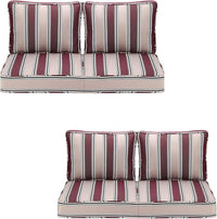 Outdoor Deep Seating Cushion Set, 24" x 24", Waterproof & Fade Resistant Patio Furniture Cushions with Handle, Deep Seat and Back Cushion for Chair and Sofa (4, Red Stripe)