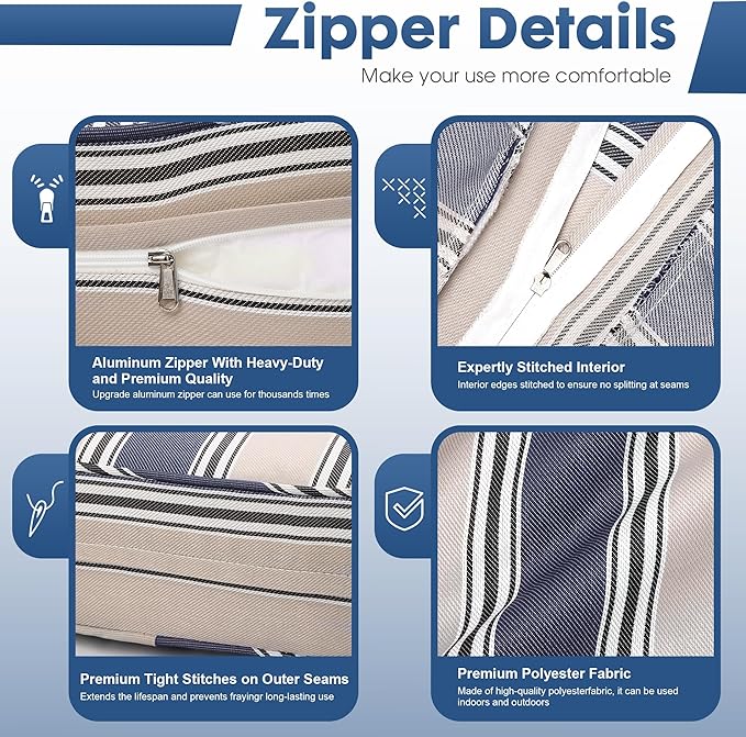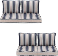Outdoor Deep Seating Cushion Set, 24" x 24", Waterproof & Fade Resistant Patio Furniture Cushions with Handle, Deep Seat and Back Cushion for Chair and Sofa (4, Blue Stripe)