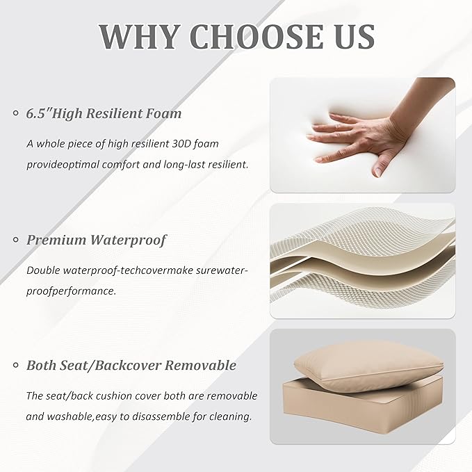 Outdoor Seat Cushion Set 24 x 24 x6.5 Inch Splash-Proof & Fade Resistant Patio Furniture Cushions with Removable Cover Deep Seat & Back Cushion with Straps for Chair Sofa Couch
