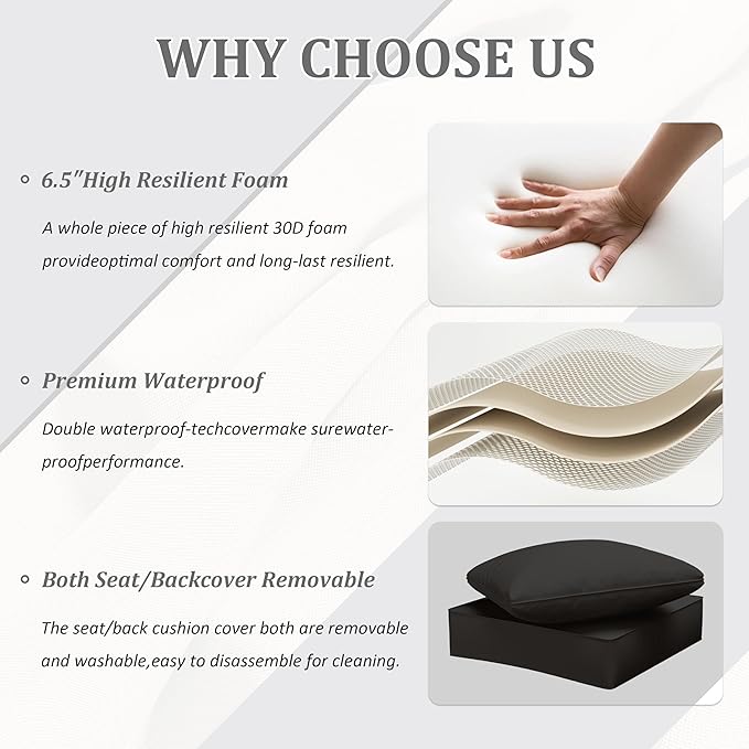 Outdoor Seat Cushion Set 24 x 24 x6.5 Inch Splash-Proof & Fade Resistant Patio Furniture Cushions with Removable Cover Deep Seat & Back Cushion with Straps for Chair Sofa Couch