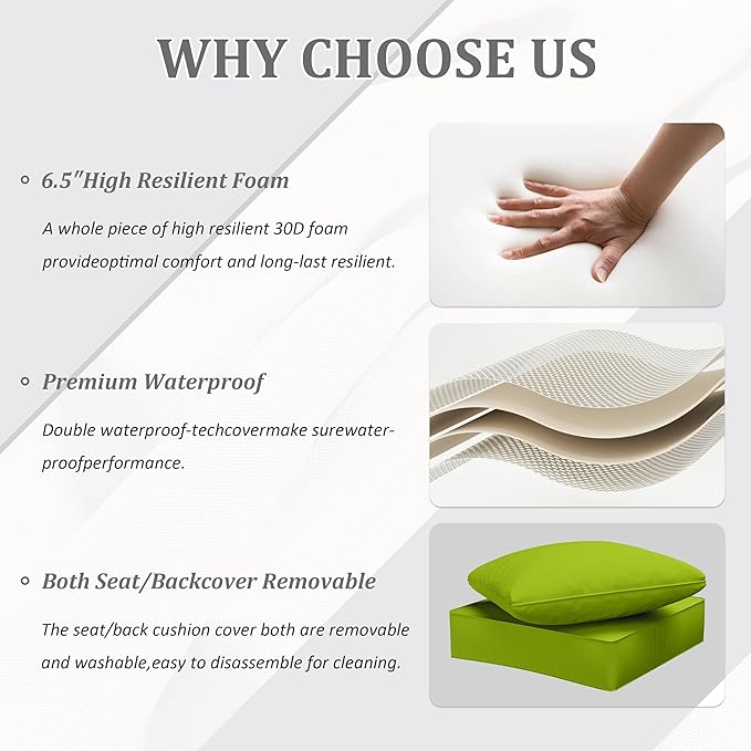 Outdoor Seat Cushion Set 24 x 24 x6.5 Inch Splash-Proof & Fade Resistant Patio Furniture Cushions with Removable Cover Deep Seat & Back Cushion with Straps for Chair Sofa Couch