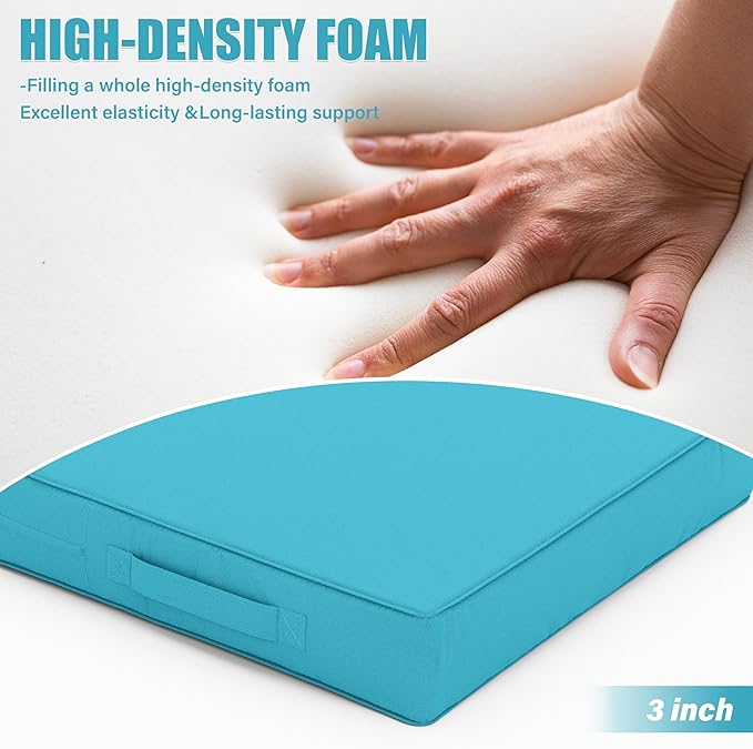 Patio Chair Cushions 17 X 16 X 3 Inch Waterproof Outdoor Seat Cushions for Patio Furniture, Outdoor Sofa Couch Pads with Ties & Handle, Set of 2, Lake Blue
