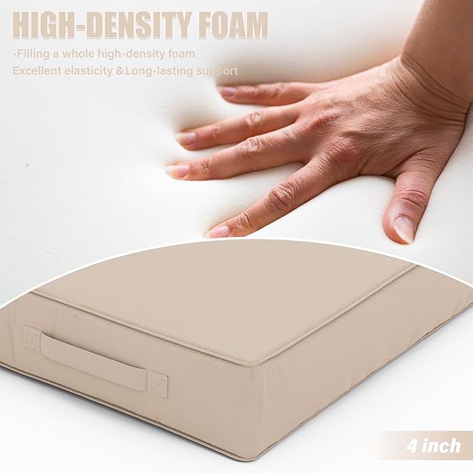 Patio Chair Cushions 22 X 22 X 4 Inch Waterproof Outdoor Seat Cushions for Patio Furniture, Outdoor Sofa Couch Pads with Ties & Handle, Set of 2, Sand
