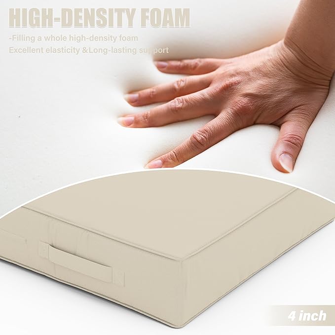 Patio Chair Cushions 18.5 X 16 X 4 Inch Waterproof Outdoor Seat Cushions for Patio Furniture, Outdoor Sofa Couch Pads with Ties & Handle, Set of 2, Cream