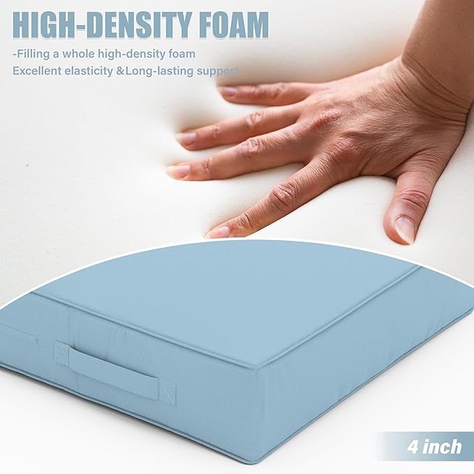 Patio Chair Cushions 18.5 X 16 X 4 Inch Waterproof Outdoor Seat Cushions for Patio Furniture, Outdoor Sofa Couch Pads with Ties & Handle, Set of 2, Light Blue