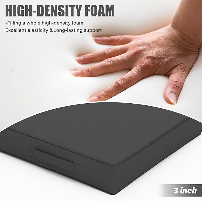 Patio Chair Cushions 17 X 16 X 3 Inch Waterproof Outdoor Seat Cushions for Patio Furniture, Outdoor Sofa Couch Pads with Ties & Handle, Set of 2, Grey