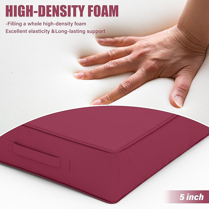 Patio Chair Cushions 24 X 24 X 5 Inch Waterproof Outdoor Seat Cushions for Patio Furniture, Outdoor Sofa Couch Pads with Ties & Handle, Set of 2, Fuchsiared