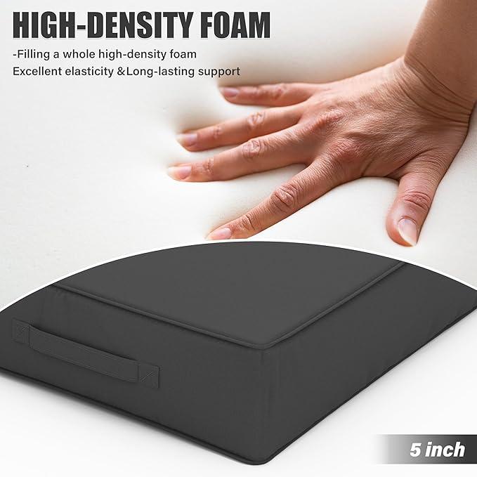 Patio Chair Cushions 24 X 24 X 5 Inch Waterproof Outdoor Seat Cushions for Patio Furniture, Outdoor Sofa Couch Pads with Ties & Handle, Set of 2, Grey