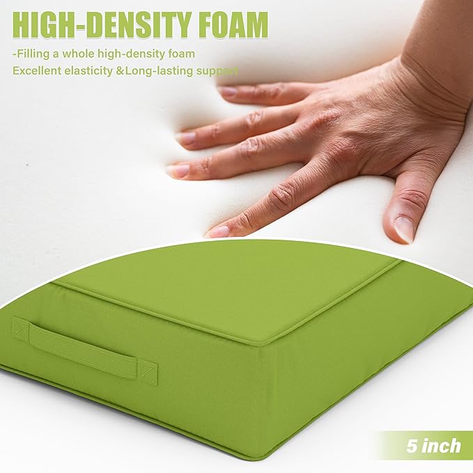 Patio Chair Cushions 24 X 24 X 5 Inch Waterproof Outdoor Seat Cushions for Patio Furniture, Outdoor Sofa Couch Pads with Ties & Handle, Set of 2, Grass Green