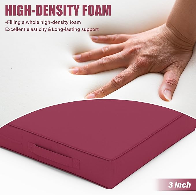 Patio Chair Cushions 17 X 16 X 3 Inch Waterproof Outdoor Seat Cushions for Patio Furniture, Outdoor Sofa Couch Pads with Ties & Handle, Set of 2, Fuchsiared